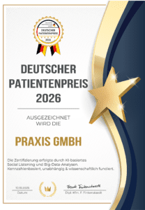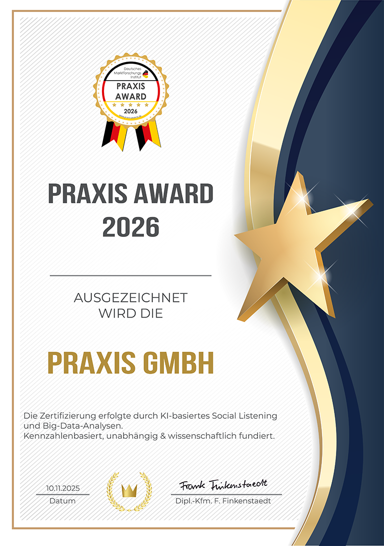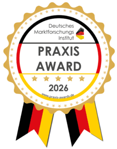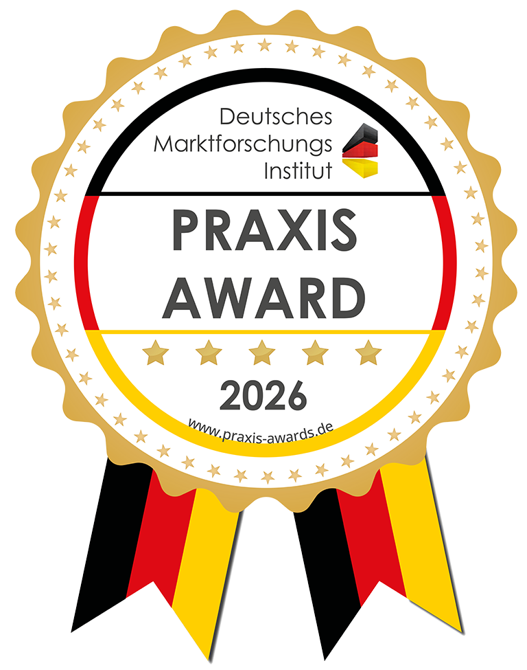 Der „Praxis Award“ ist ein hochwertiges Qualitätssiegel, das ausschließlich an Praxen verliehen wird, die in allen Bereichen herausragende Leistungen erbringen. Es steht für höchste Standards. Dieses Siegel symbolisiert nicht nur eine Auszeichnung, sondern auch das Vertrauen der Kunden in ein außergewöhnliches Erlebnis.